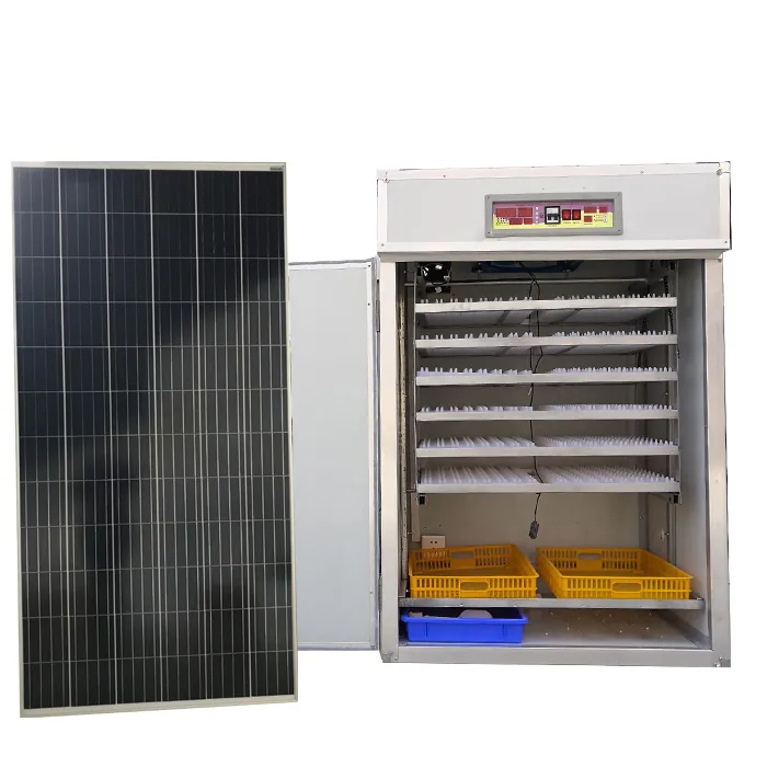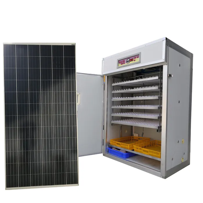 Digital Solar Powered Automatic Solar Egg Incubator 1056 CapacityFeatures of hatchery egg incubator:Feature of Solar Egg Incubator 1.Full automatic(temperature, humidity, water heater,egg turning,circulation)2.CE and SGS Approved3.Double ventilation channel is 6cm for air circulation efficiently4.Ha......