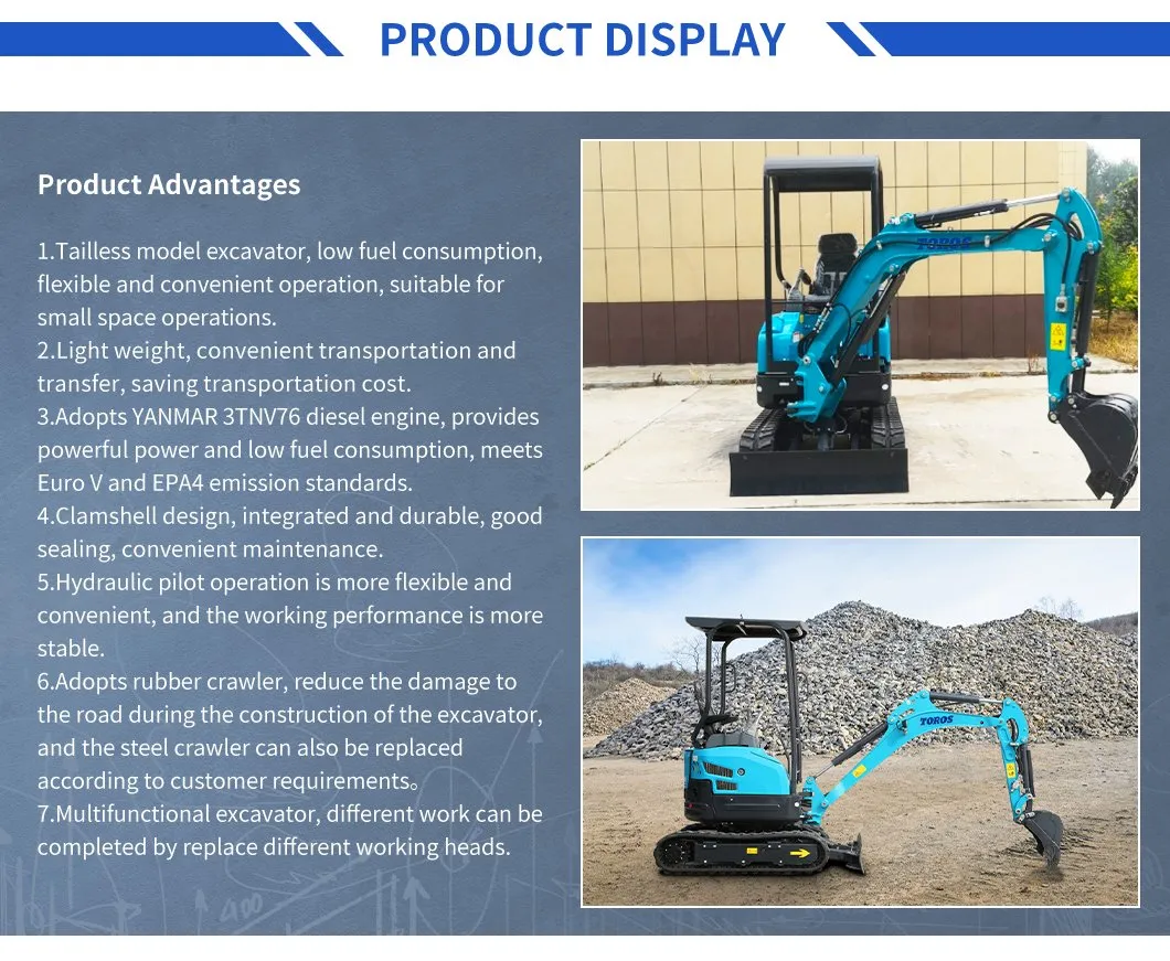 Factory Direct Sale Mini digger Price 1.8 Ton Small Digger ExcavatorTE 20S zero tail mini excavator multi-functional hydraulic excavator.TE20S model, our new 2 ton Zero tai Mini Excavator designed in 2021, Not only improve work efficiency, but also improve appearance, tailless design, flexible and c......